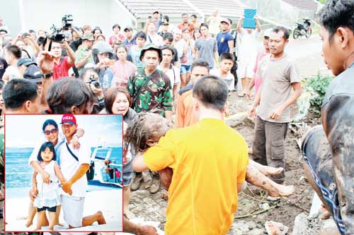 Bencana Terbesar di Manado, 17 Tewas, Ribuan Mengungsi NAAS: Bocah Enggelica Palit saat dievakuasi dari timbunan longsor di Citra Land. (insert) Foto semasa hidup Enggelica bersama papa dan mamanya Frangky Palit dan Elisabeth Kawilarang yang juga ikut menjadi korban.